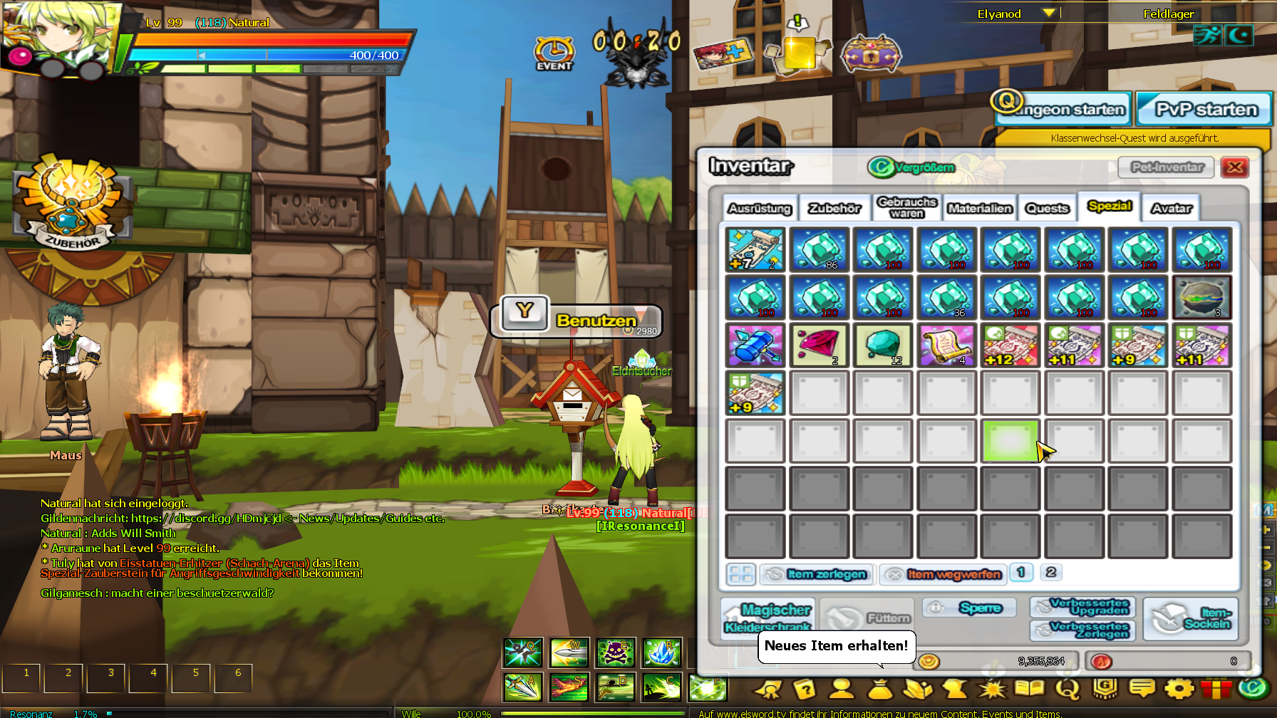 Mit dem Rest meines upgradematerials konnte ich meine rüstung auf +10 und meine handschuhe auf +11 machen und mir einen blauen All Skill Damage 5*Verstärkzngswert ertauschen.