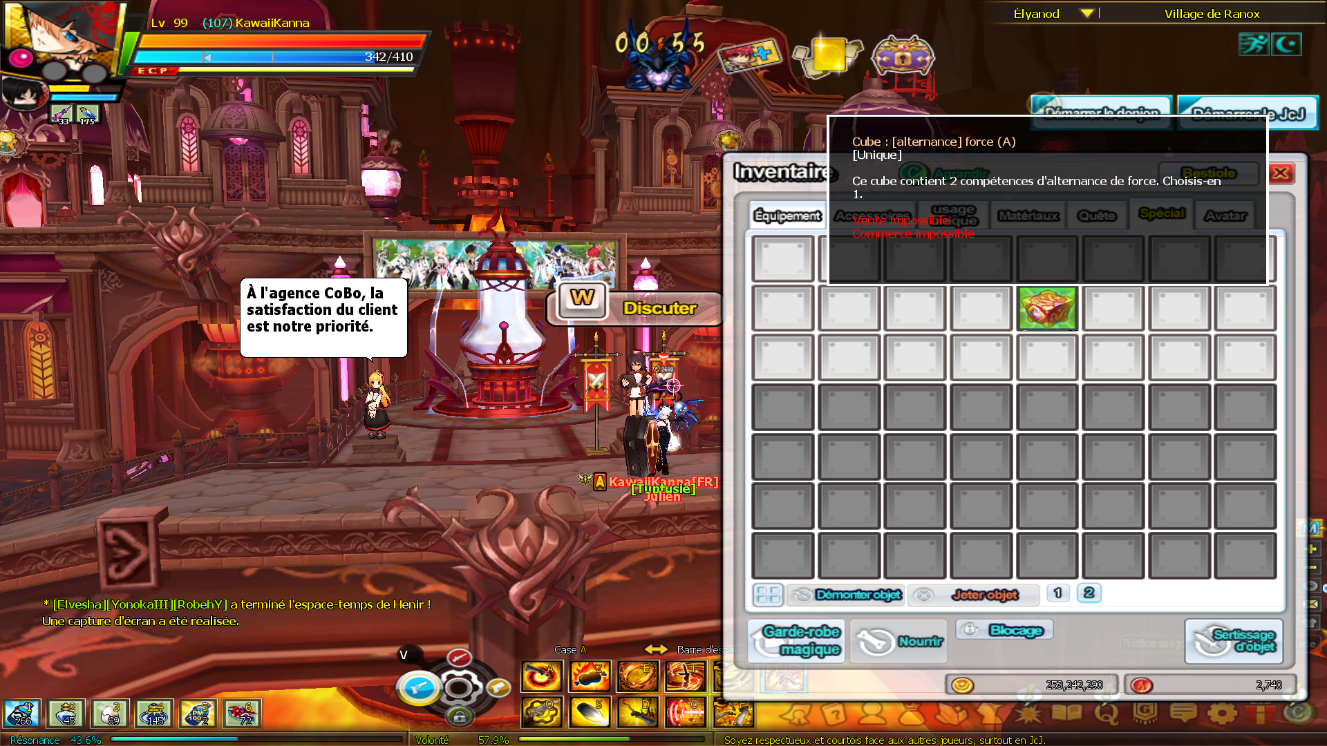 Ok. Donc j'ai un Elyanod +9 complet avec des pierres niveau 25+, 400k HP et 20% de résistance dégâts et le boss du 12-4 m'OS à coup sûr. Fun.