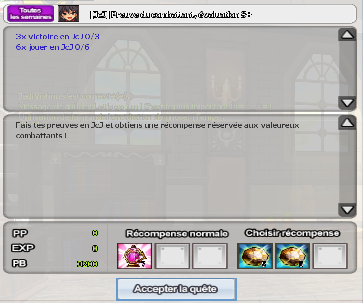 Je viens de remarquer cette petite quête semaine et je me demandais si elle était permanente ? Logiquement oui vu qu'elle n'est pas dans l'onglet d'évent mais on sait jamais, je préfère demander !