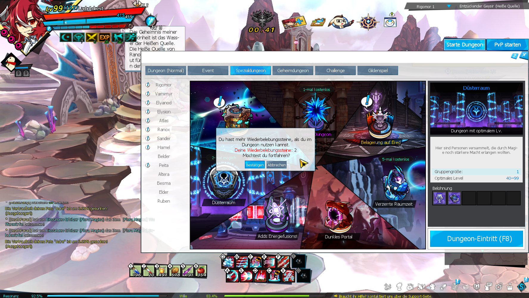 "Du hast weniger Wiederlebungssteine , als du im Dungeon nutzen kannst." ?