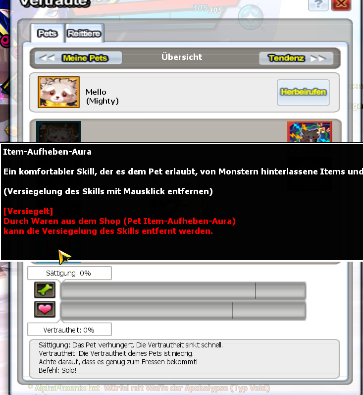 Meine beiden Eventpets Mello (braun) haben ihre Aufhebeaura verloren, obwohl diese durch die spezielle Aufhebeaura für Mello (braun) permanent aktiviert seien sollte.