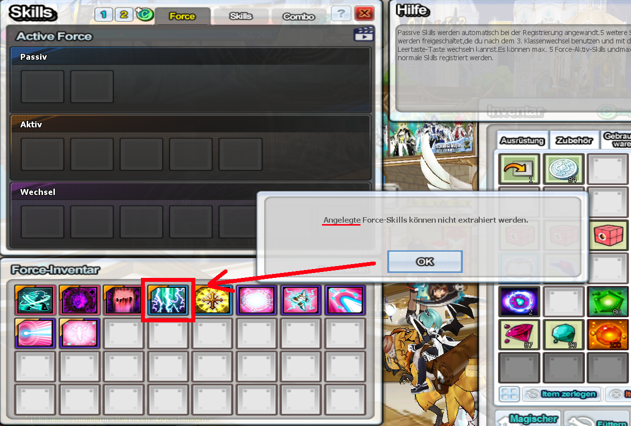 mein Problem liegt darin das ich diesen [nicht angelegten] Force skill, und den links daneben, nicht extrahieren kann.