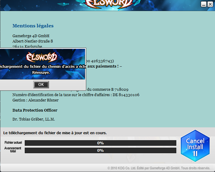 J'ai voulu reprendre elsword après une longue période d'absence ... après plusieurs heures de téléchargement je fini pas enfin pouvoir lancé le jeu ... tout fonctionne je suis content ... le lendemain je me connecte et le jeux m'envoie un message me dictant que je ne peut plus me connecté ... j'ai déjà essayé de relancé mon pc voir même de retéléchargé le jeux même sur la version steam et rien ne fonctionne j'aimerai de l'aide car je suis légèrment irrité a l'idée de ne plus pouvoir joué après deux téléchargement