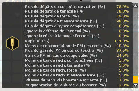 CP Dégâts : 2M et CP exp : 1,5M